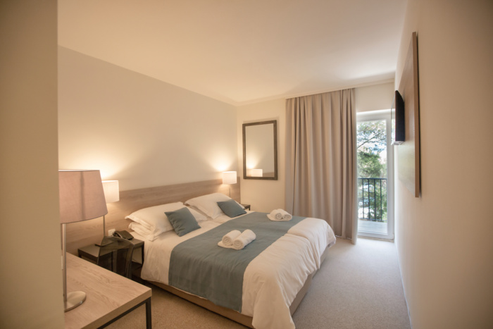 LABRANDA Senses Resort, set amidst lush greenery and located just 50 meters from the beach, offers a tranquil seaside escape with 182 recently renovated modern rooms. The resort features a mix of double rooms and suites, with 18 connected rooms and 4 specifically designed for guests with disabilities. Each room is thoughtfully designed by Croatian designers to create a relaxing atmosphere with natural colors and sophisticated details. Guests can enjoy stunning views from rooms that offer side sea, park, or full sea views, while suites provide spacious accommodations with separate living areas.