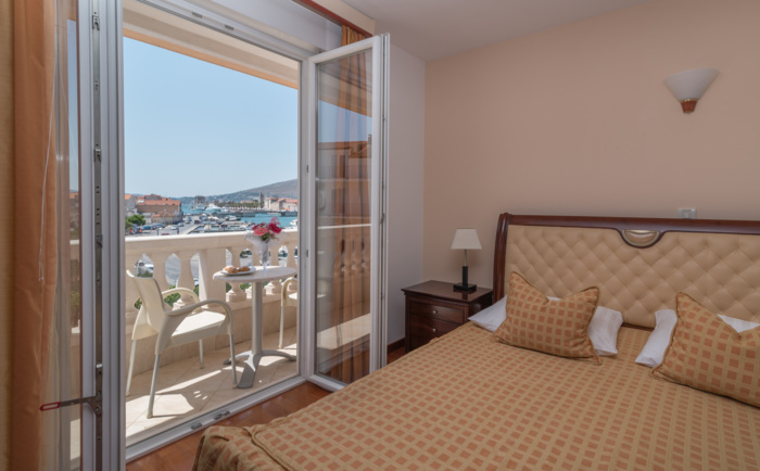 Hotel Trogir Palace, a charming family-run luxury boutique hotel, is located on Čiovo Island, just 200 meters from the UNESCO-listed town of Trogir. Opened in July 2008, this elegant hotel combines modern comforts with warm, personalized service to create a relaxing and unforgettable holiday experience. The hotel features 36 luxurious rooms and apartments, each equipped with amenities like plasma or LCD TVs, air conditioning, minibars, safes, and free high-speed internet. Every room boasts a private balcony with breathtaking views of the sea and the old town of Trogir.