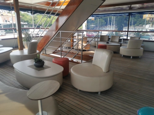 The MV Admiral is a stylish and spacious vessel, part of the deluxe fleet designed specifically for cruising the picturesque Croatian coastline. Launched in 2015, it offers an expansive platform for comfort and leisure. With a capacity for up to 38 guests, the ship features 20 well-appointed cabins, equipped with modern amenities like air conditioning, flat-screen TVs, and safes. The main salon is a perfect place for dining and relaxing among friends with spectacular views.