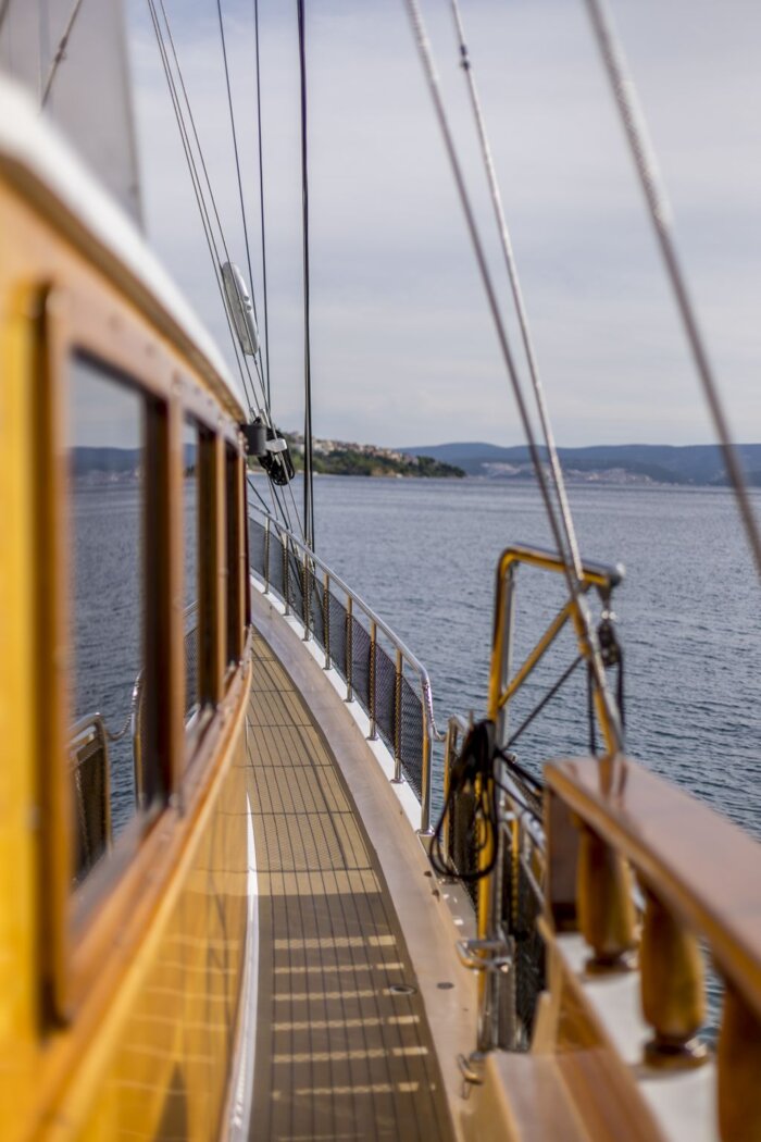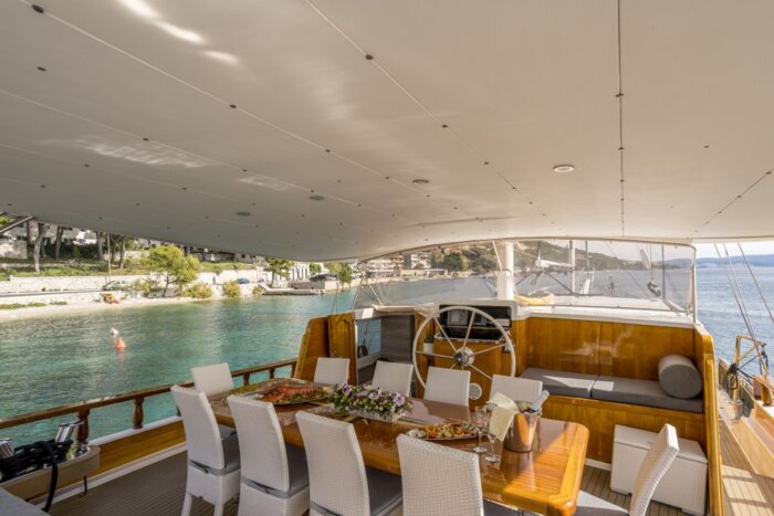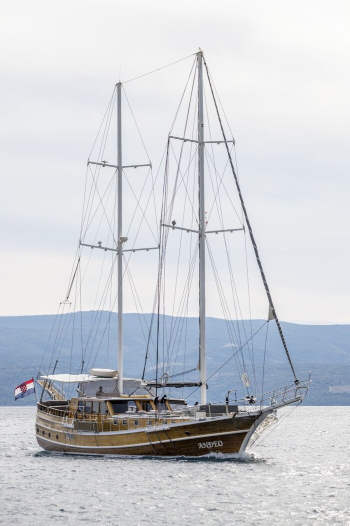 The Anđeo is a fully renovated gulet offering luxurious accommodations for up to 10 guests in 5 double-bed cabins. With spacious bathrooms, high-quality linens, and professional crew service, it ensures a comfortable and friendly cruising experience. Guests can enjoy a variety of water sports, ample sunbathing areas, and a newly upgraded shaded lounge on the stern deck. The Anđeo combines excellent dining, a welcoming atmosphere, and extra amenities for a memorable Adriatic voyage.