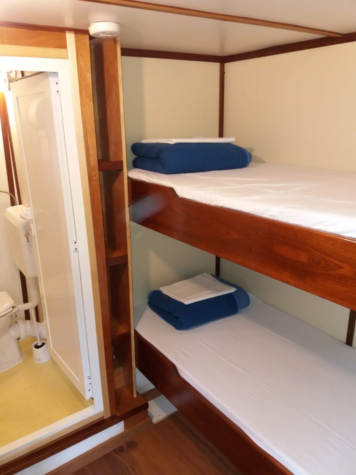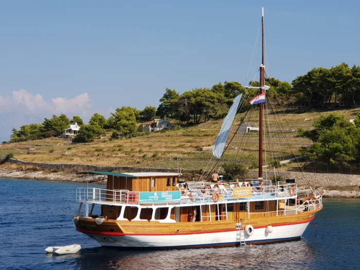 The Horizont is a vessel in Katarina Line's "Traditional" category, offering a delightful way to explore the Adriatic Sea with charm and simplicity. This wooden ship features a cosy and inviting air-conditioned salon where guests can relax after a day of sightseeing. Its 16 cabins, equipped with washbasins and bunk beds, provide a rustic and authentic maritime experience, with shared shower and toilet facilities located on the deck.